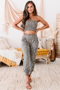 We're Wild About This Brown, Leopard Print, Smocked Tube Top & Jogger Two-Piece Set!
