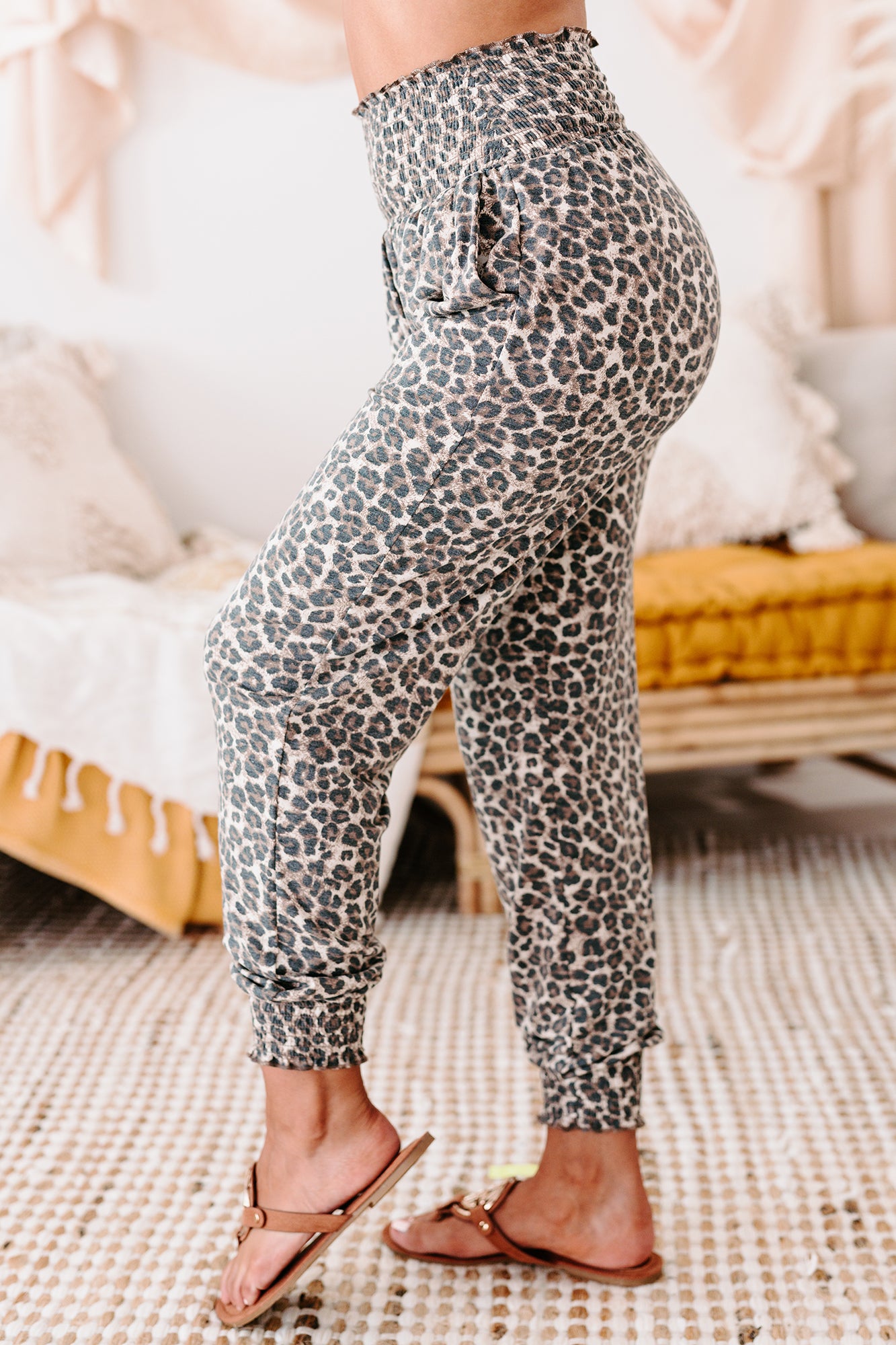 Wild Ways Smocked Leopard Print Two Piece Set (Brown)