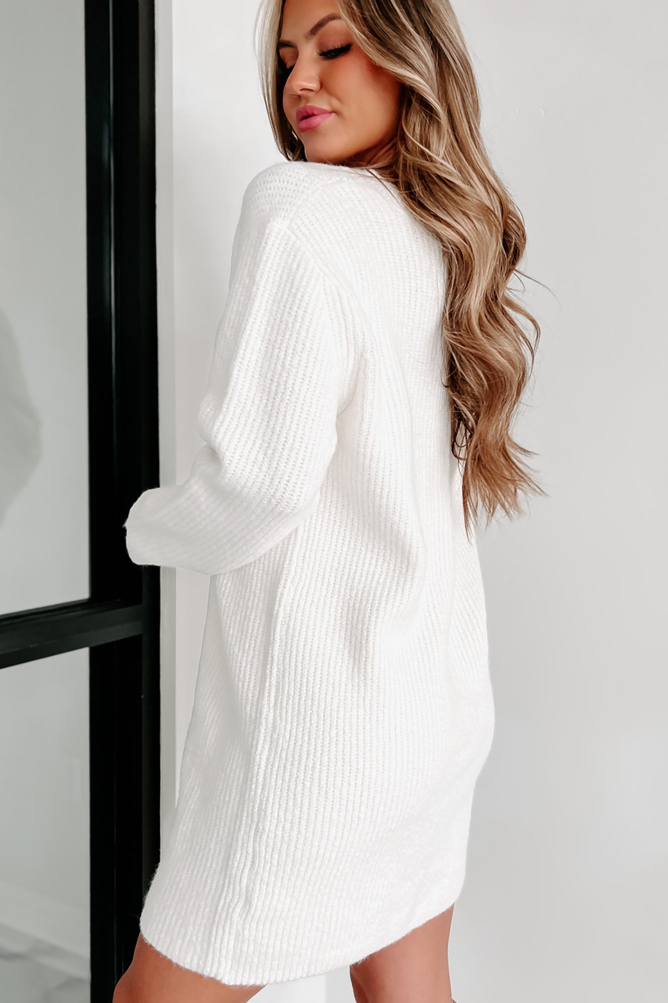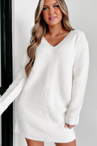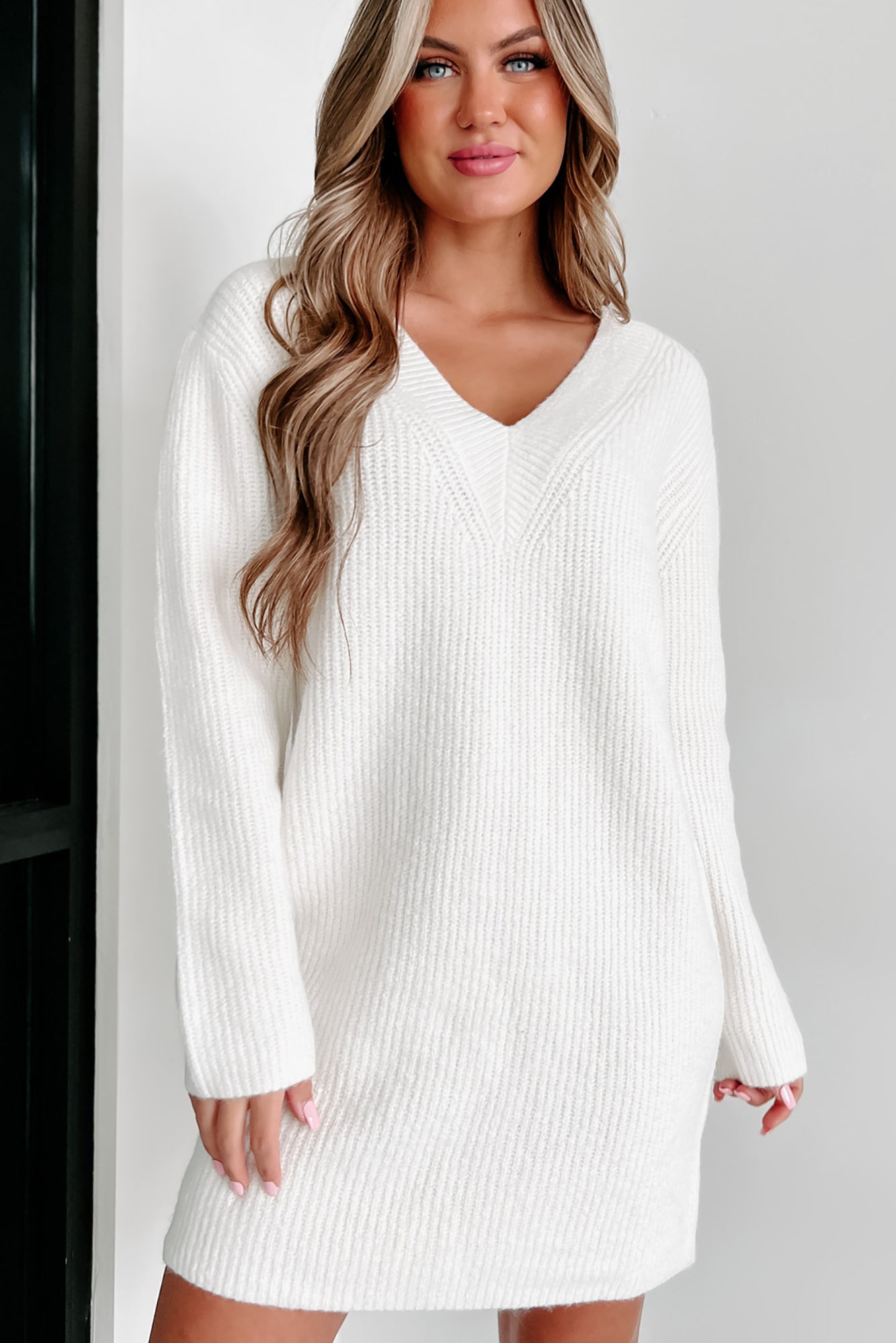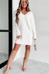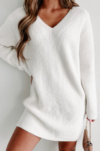 Winter Essential V-Neck Sweater Dress (Ivory)