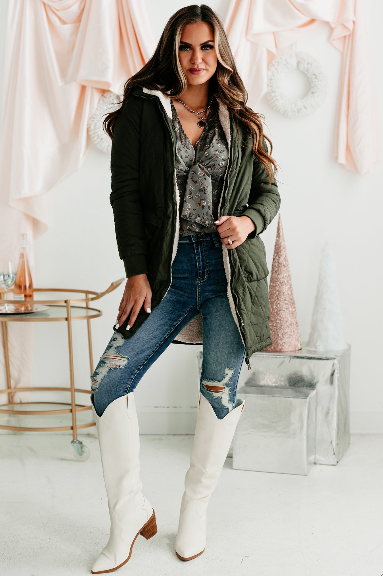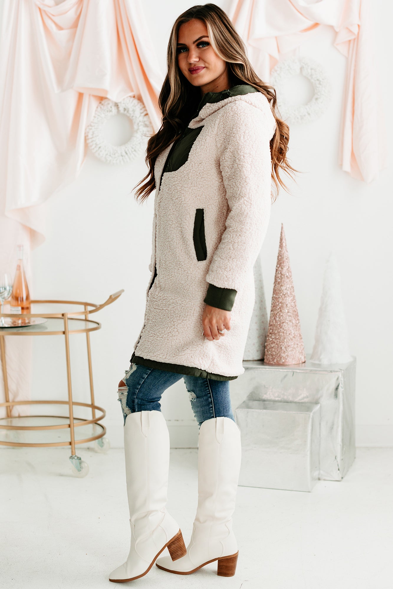 Get Ready For Winter With This Olive & Natural, Reversible Coat!