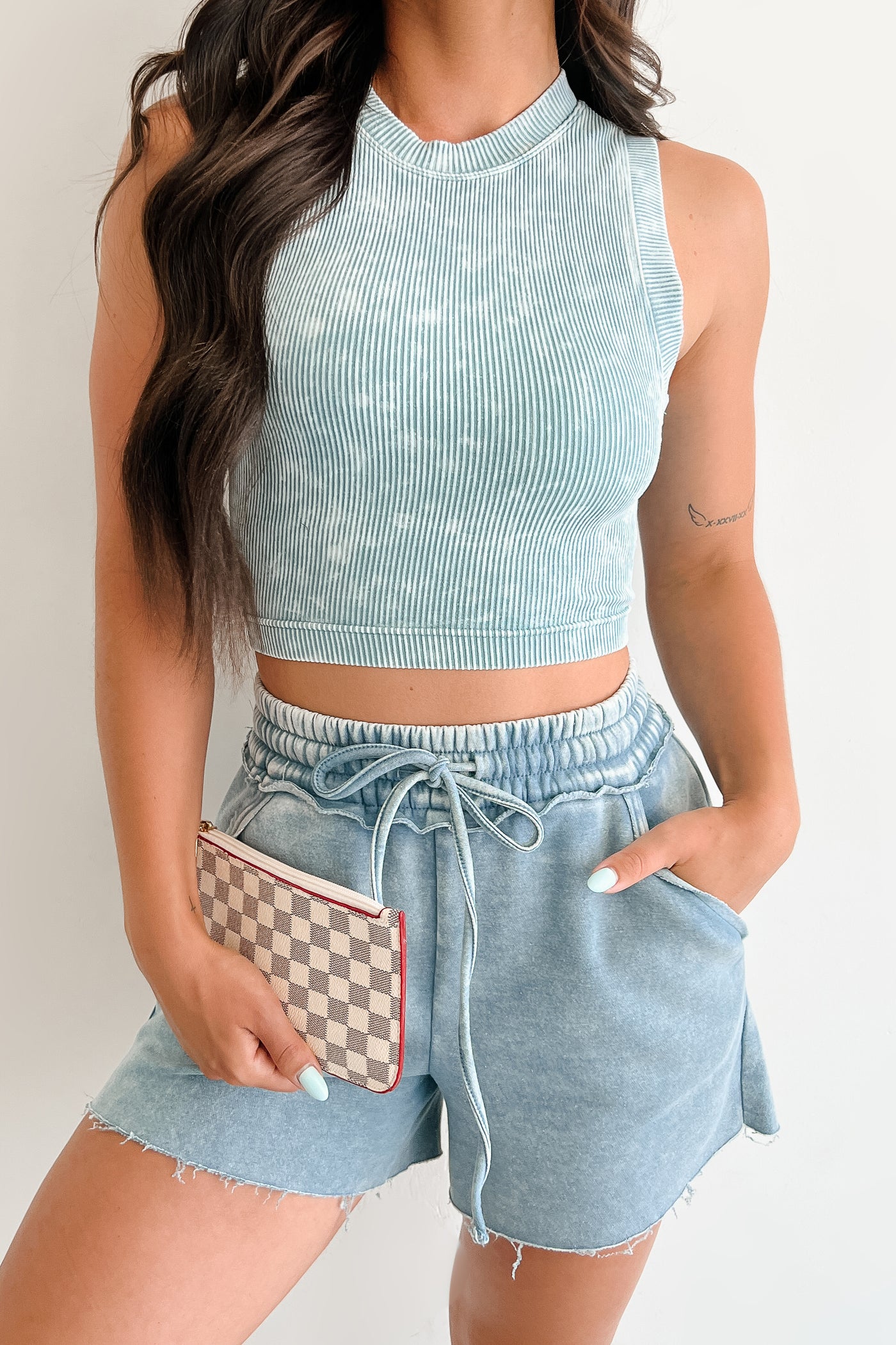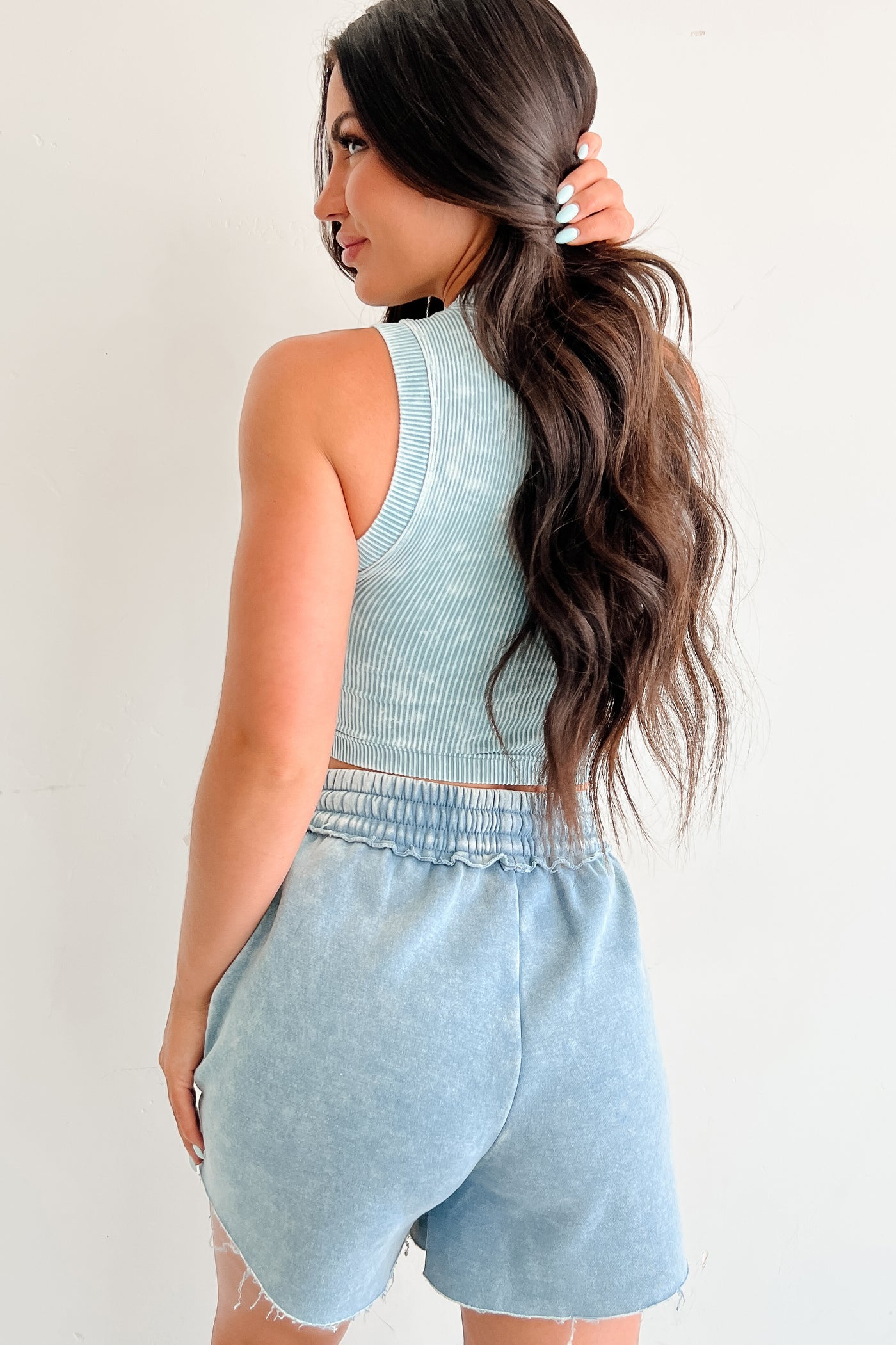 Woke Up Cute Stone Wash Padded Zenana Top (Blue Grey) - NanaMacs