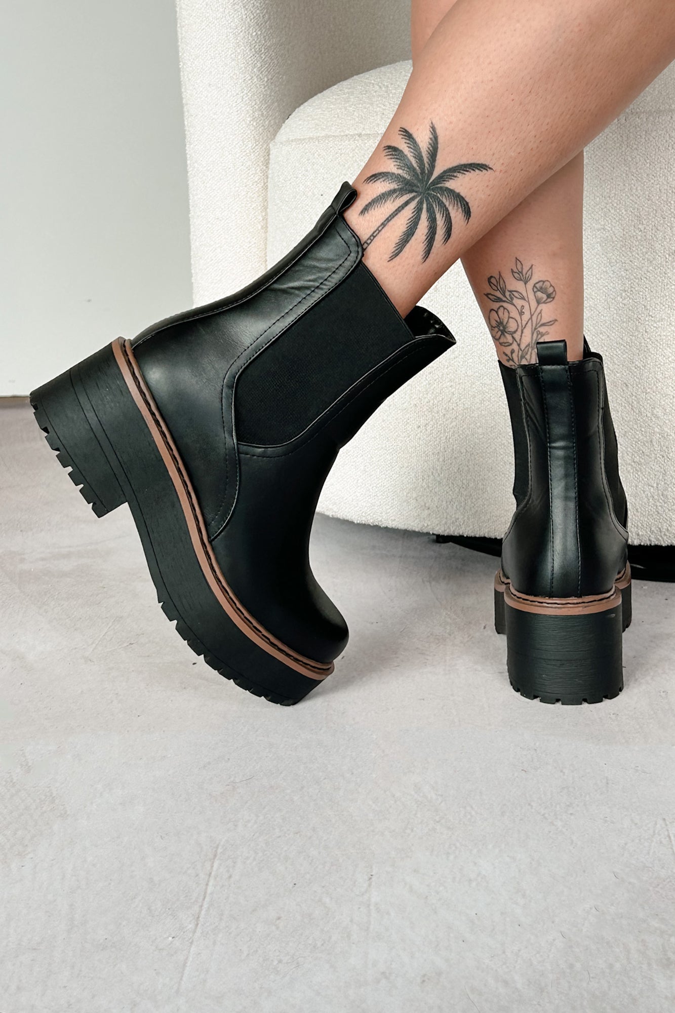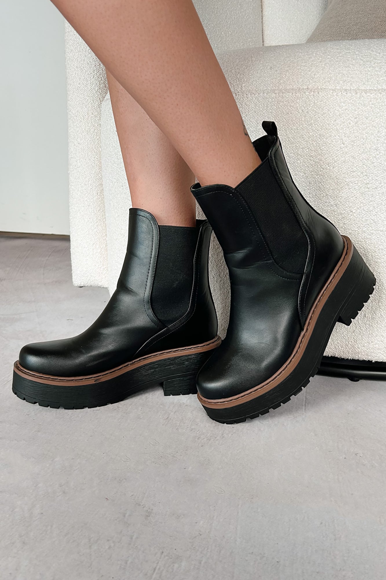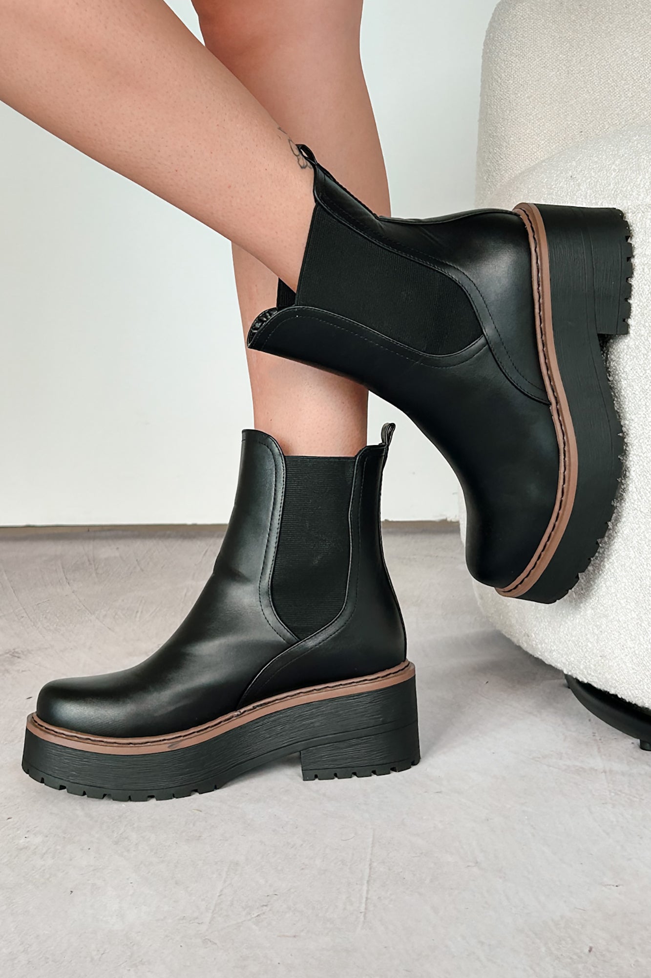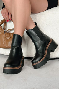 Yossi Faux Leather Platform Chelsea Boots (Black PU) - NanaMacs