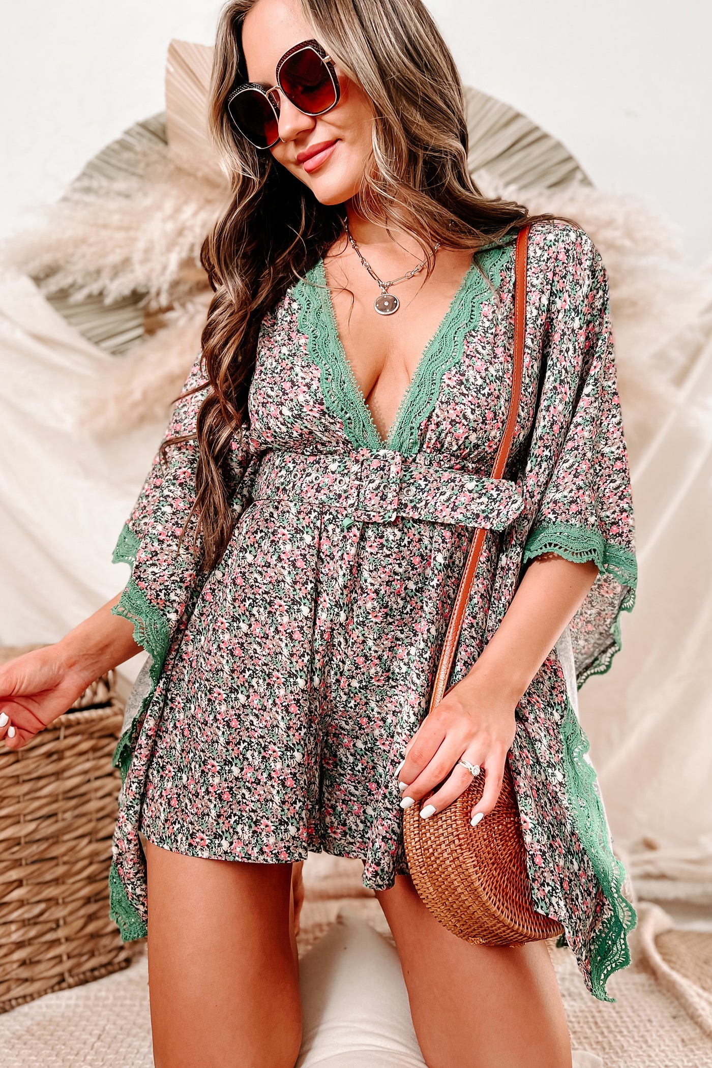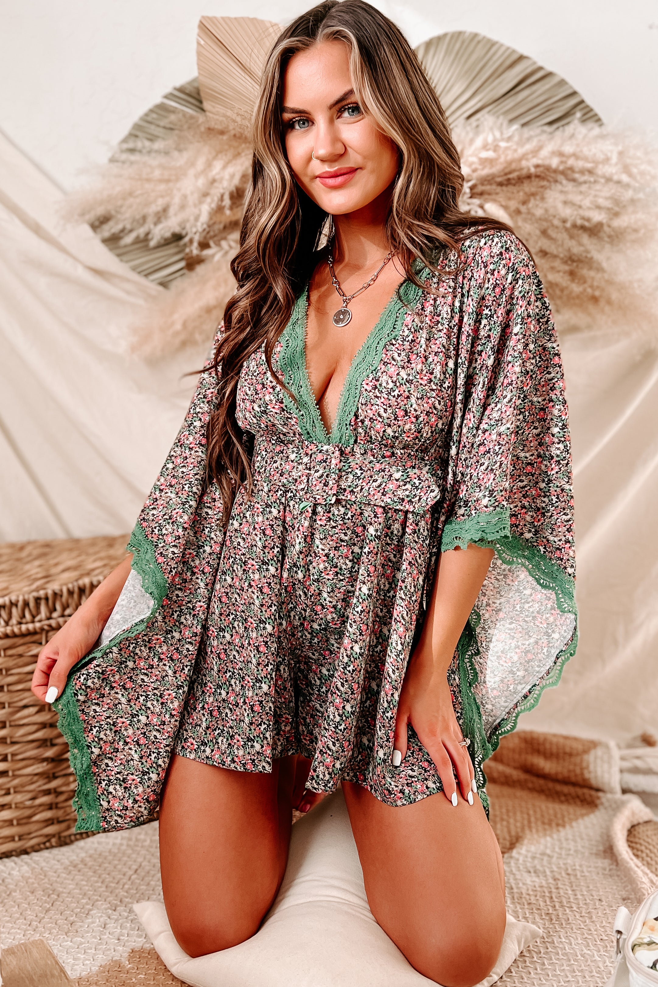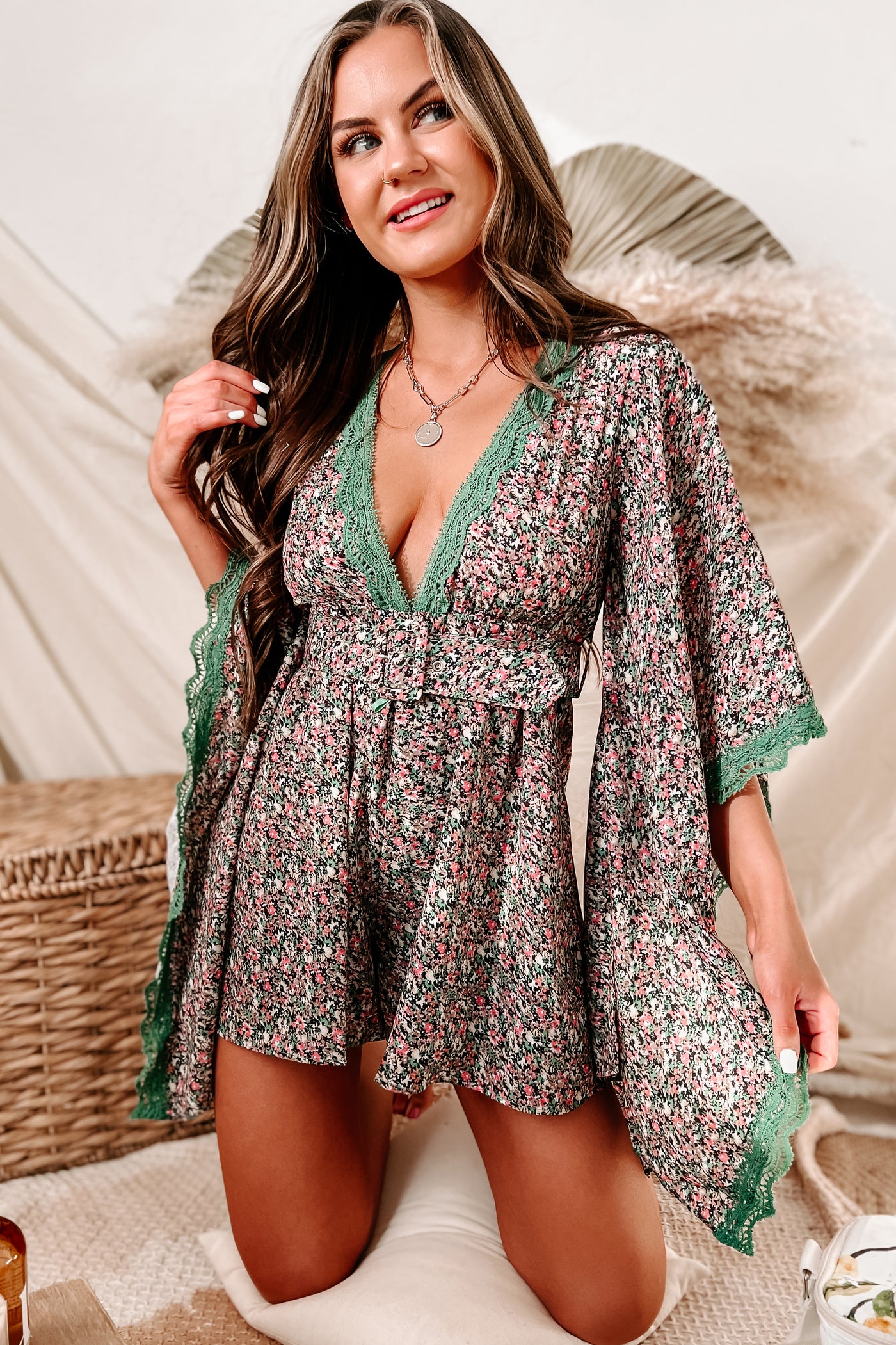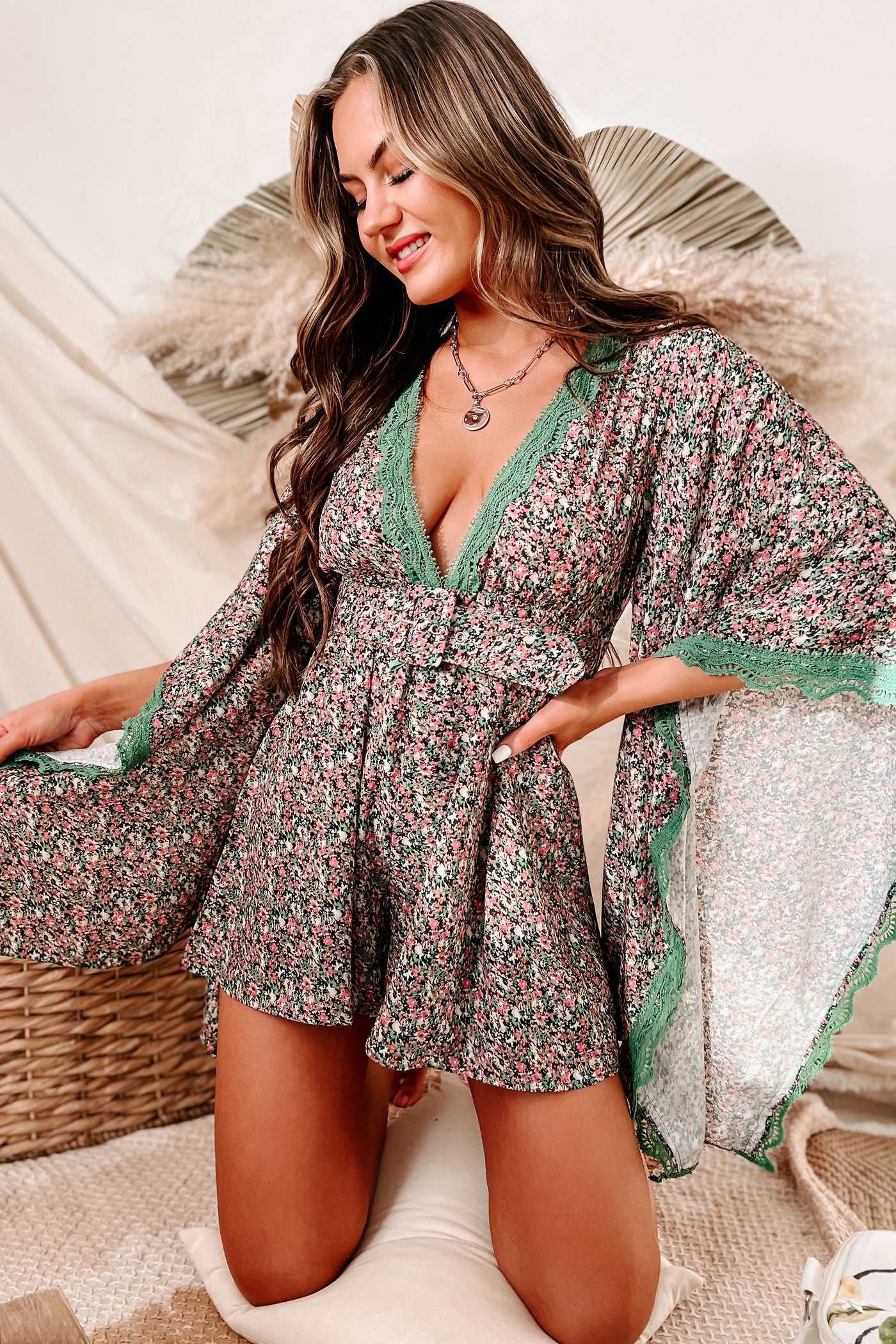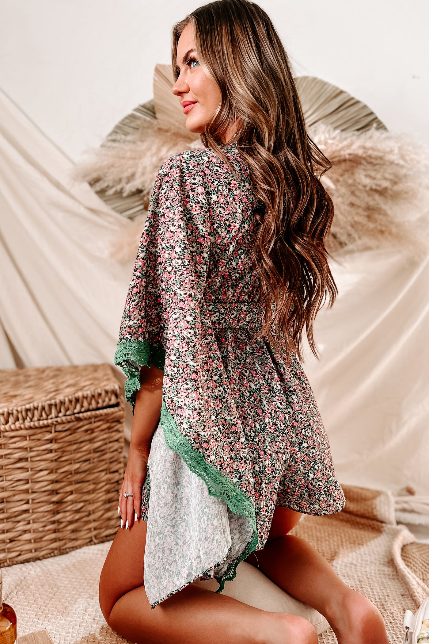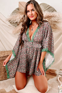 Zen Garden Floral Kimono Sleeve Romper (Green Multi)